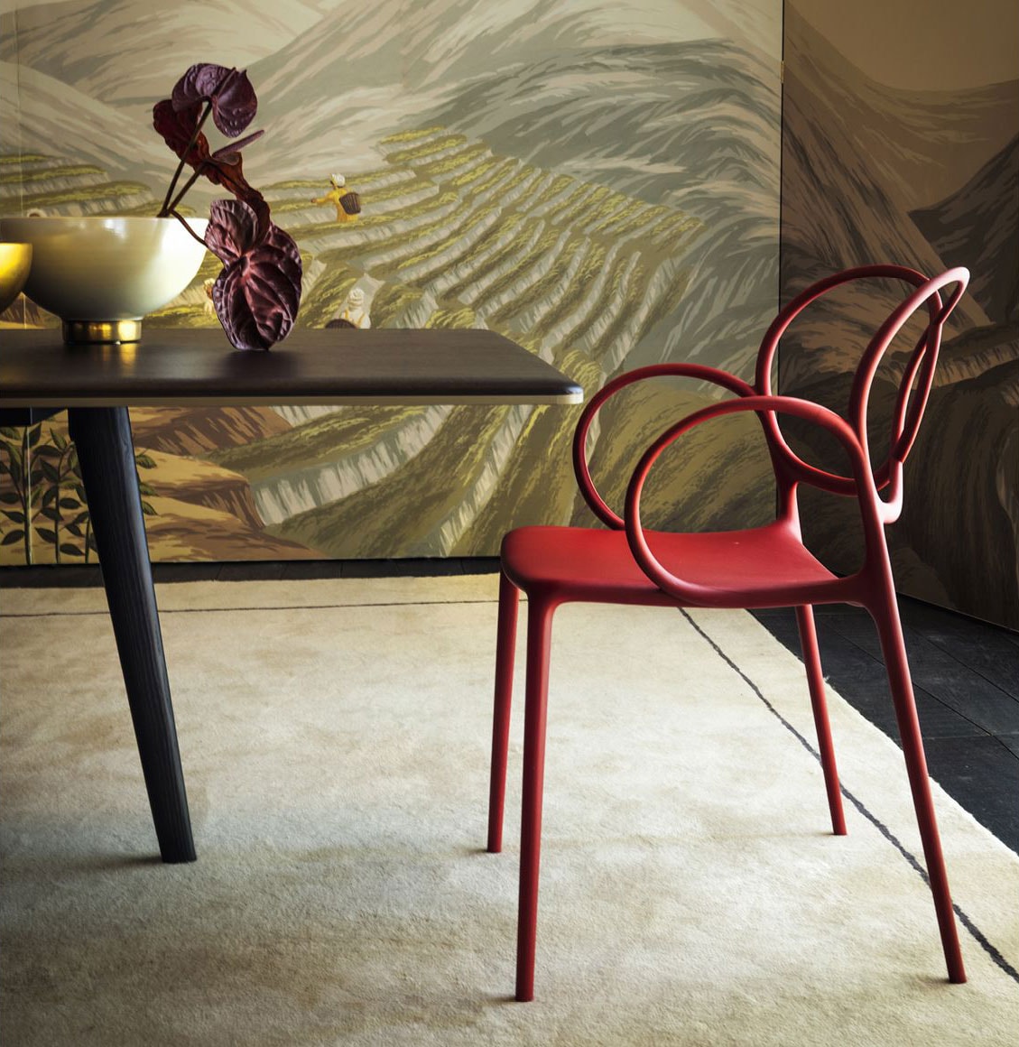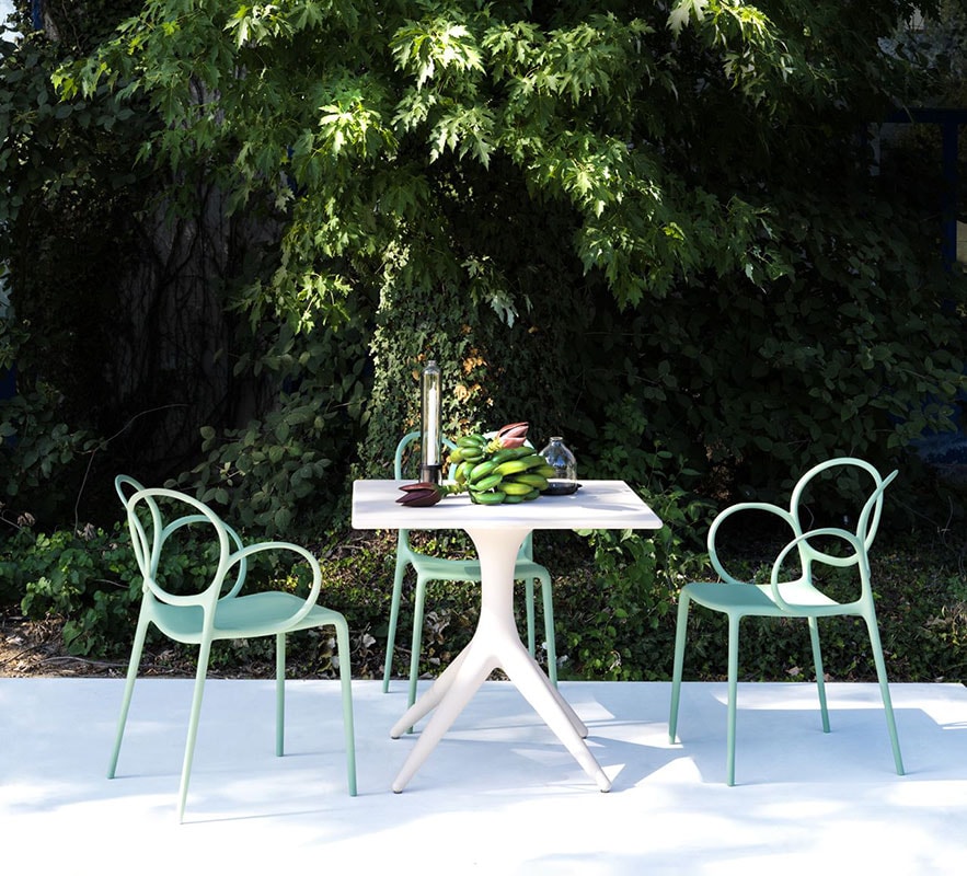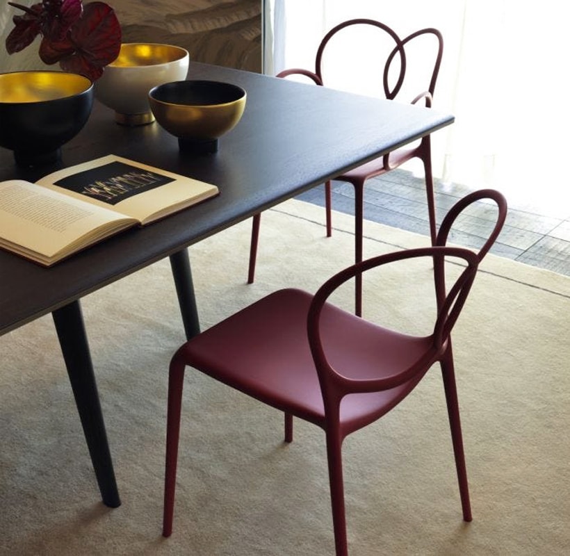 Restando nell’ambito delle sedie monoblocco in polipropilene, un’altra interessante proposta è la sedia Sissi di Driade, disegnata da Ludovica e Roberto Palomba. La sedia Sissi rievoca con estrema grazia le sedie in stile viennese, grazie al suo schienale formato da due cerchi incrociati.