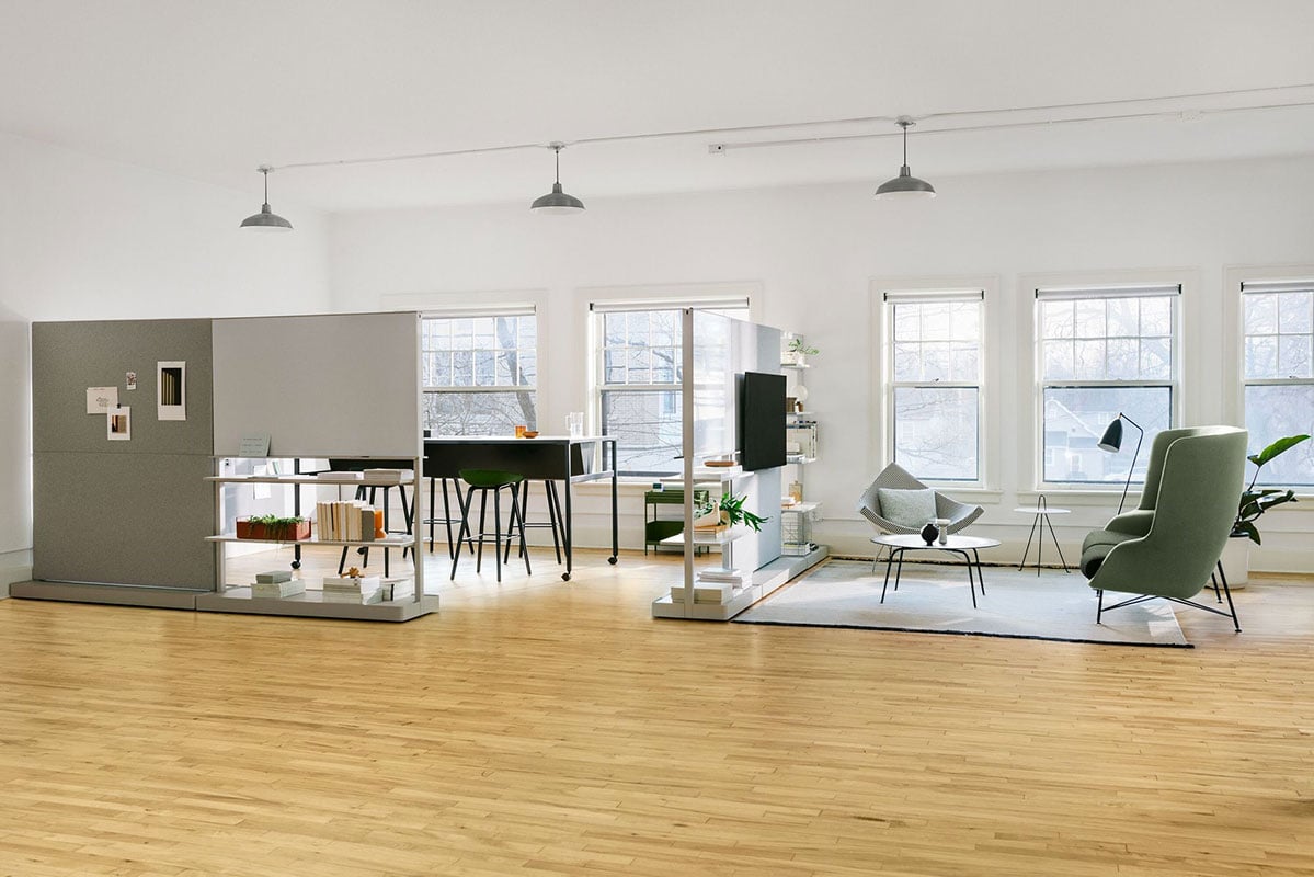 In una sala riunioni contemporanea, i pannelli fonoassorbenti da terra sono un ottimo alleato per riconfigurare gli spazi a seconda del tipo di meeting e creare zone operative isolate visivamente e dall’elevato livello di comfort acustico.