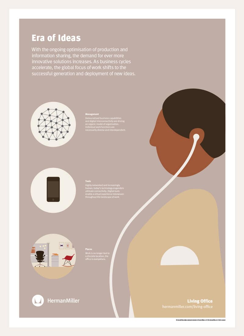L’evoluzione degli ambienti di lavoro che si sta attuando velocemente a livello globale, implica per le aziende una grande metamorfosi portando ad una modifica della natura stessa del lavoro, complici le nuove tecnologie, per adattarsi ad una più ampia varietà di attività che possono essere considerate “social”. Gli studi in merito dimostrano come possiamo parlare di vere e proprie “Ere di Cambiamento” e di come si sia passati da relazioni di tipo piramidale a compartimenti stagni a vere e proprie “reti sociali” in cui lo scambio di informazioni è facilitato in favore di una migliore performance globale. Le aziende iniziano a comprendere il valore dell’incontro tra le persone promuovendo le connessioni locali attraverso ambienti progettati ad hoc in cui anche l’arredamento gioca il suo ruolo specifico.