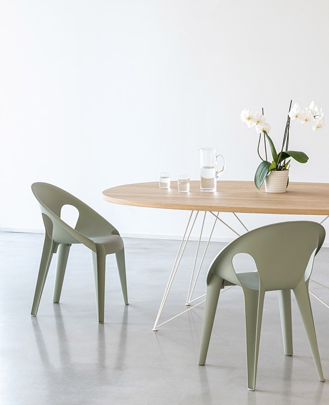 Molto diffusi sono anche i materiali riciclati ottenuti da tessuti usati oppure da plastica raccolta in mare, come quelli utilizzati da Herman Miller per Aeron OBP e i più recenti modelli di Sayl.