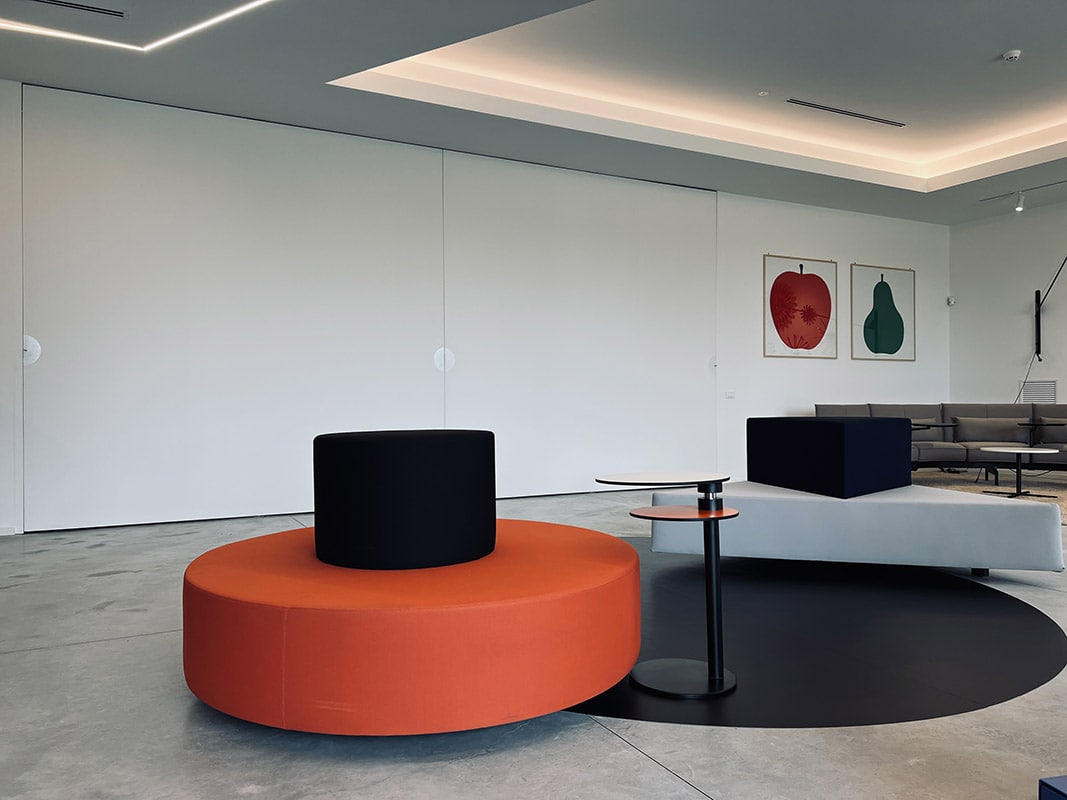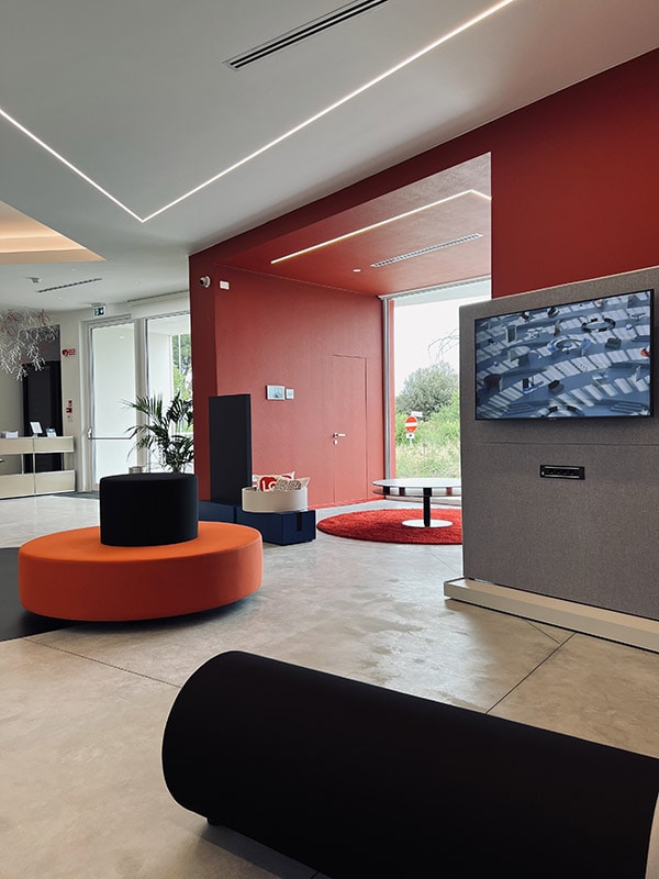 • Spazio di lavoro efficiente e vivibile, progettato con ambienti e arredi ergonomici organizzati e selezionati per garantire il benessere dei nostri collaboratori;