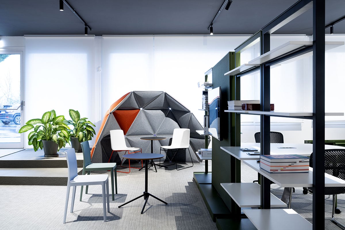 Gli spazi espositivi si trasformano in un luogo per mostrare l’esperienza e raccontare il valore di spazi di lavoro efficienti, belli e durevoli.