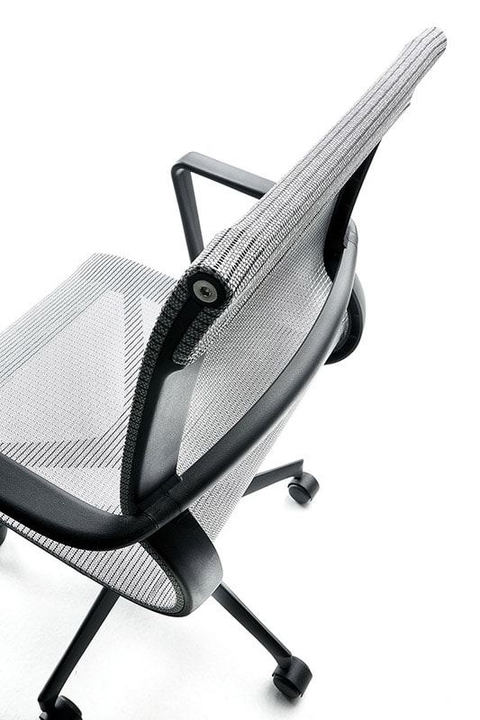 Una sedia operativa ideale per l’ufficio e per l’home office, anche grazie alle possibilità di abbinamento cromatico offerte dai rivestimenti tessili Della Chiara.