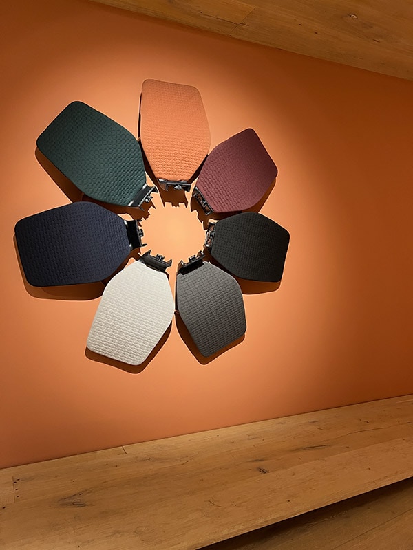 Tutti i rivestimenti disponibili sono realizzati in poliestere riciclato e offrono una gamma di sette colori morbidi e rilassanti.