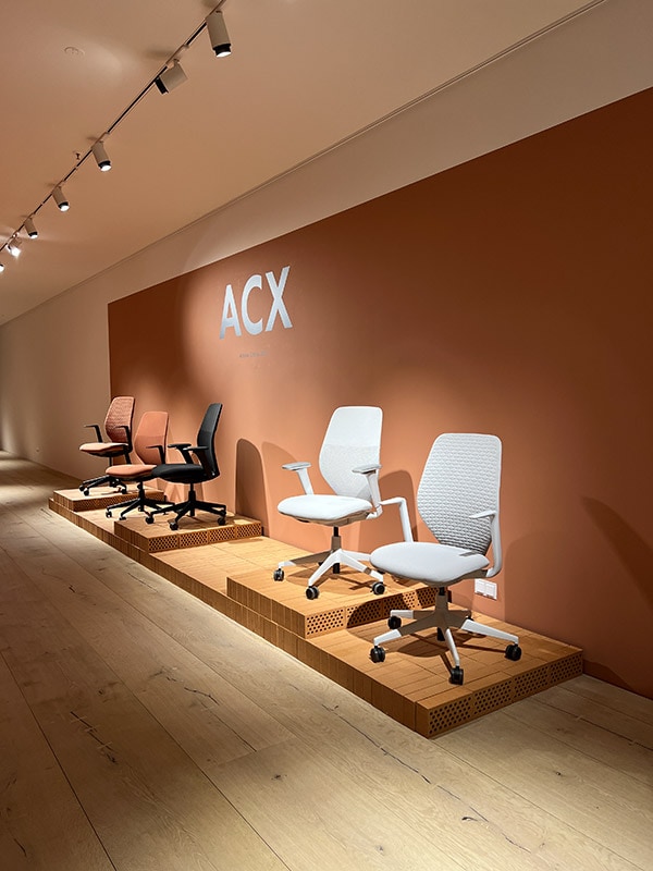- ACX Mesh, con rivestimento a rete in maglia di poliestere riciclato semitrasparente, per garantire ottime performance in termini di sostegno ergonomico e circolazione dell’aria;
