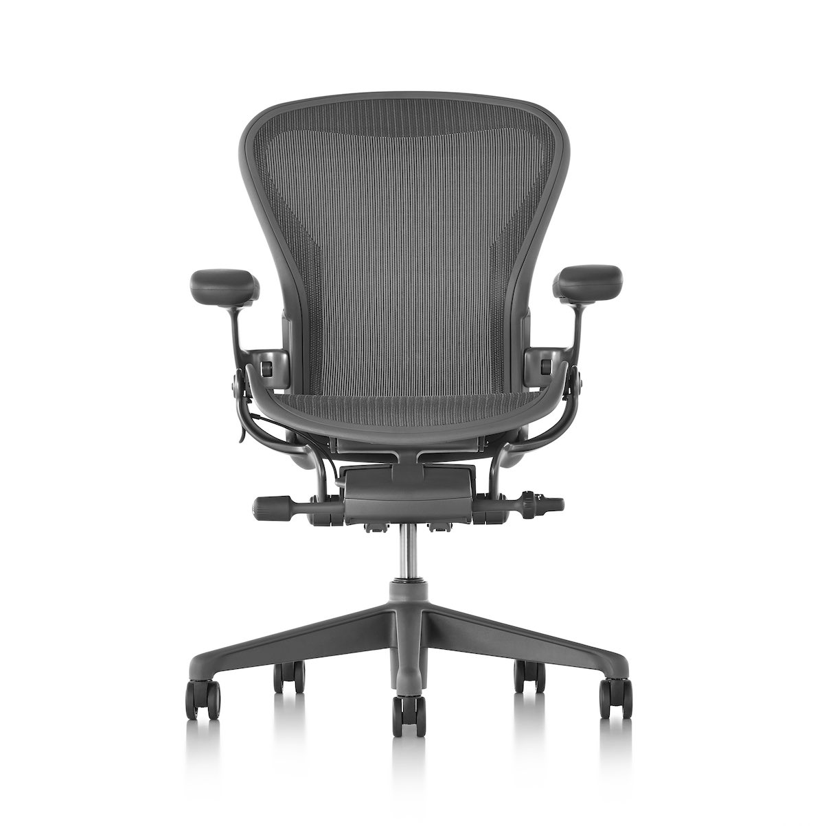 Aeron è disponibile in tre diverse colorazioni dall’appeal sofisticato e tecnologico, con finiture in alluminio satinato. Il colore più scuro è Graphite, la versione più moderna della Aeron classica. Carbon è la più versatile e neutra, mentre Mineral è la più chiara, fatta per adattarsi a open space oppure angoli studio domestici.
