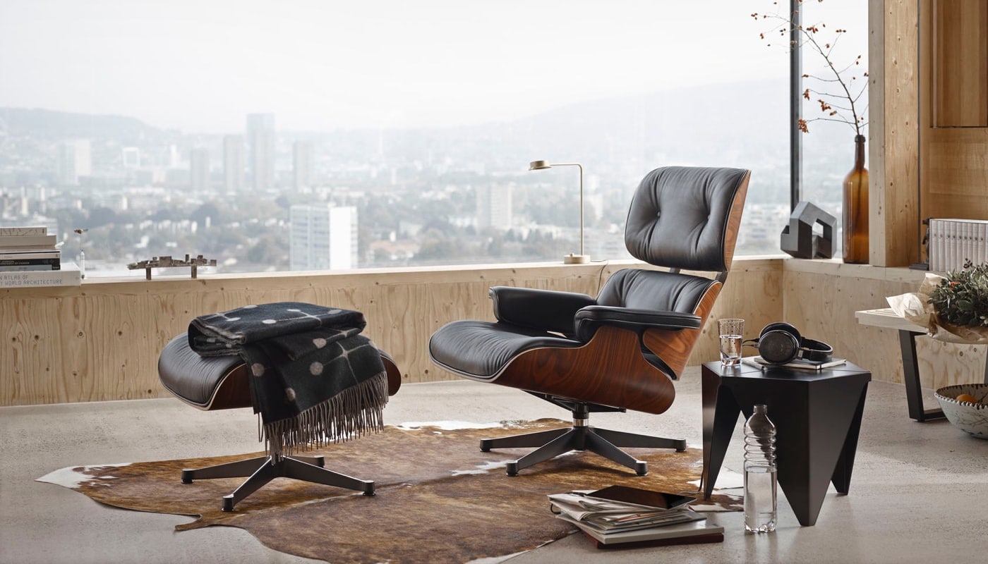 Lounge Chair & Ottoman è tra i progetti di maggior successo di Charles & Ray Eames, una rivisitazione della poltrona da club inglese in legno e pelle, abbinata al classico poggiapiedi.