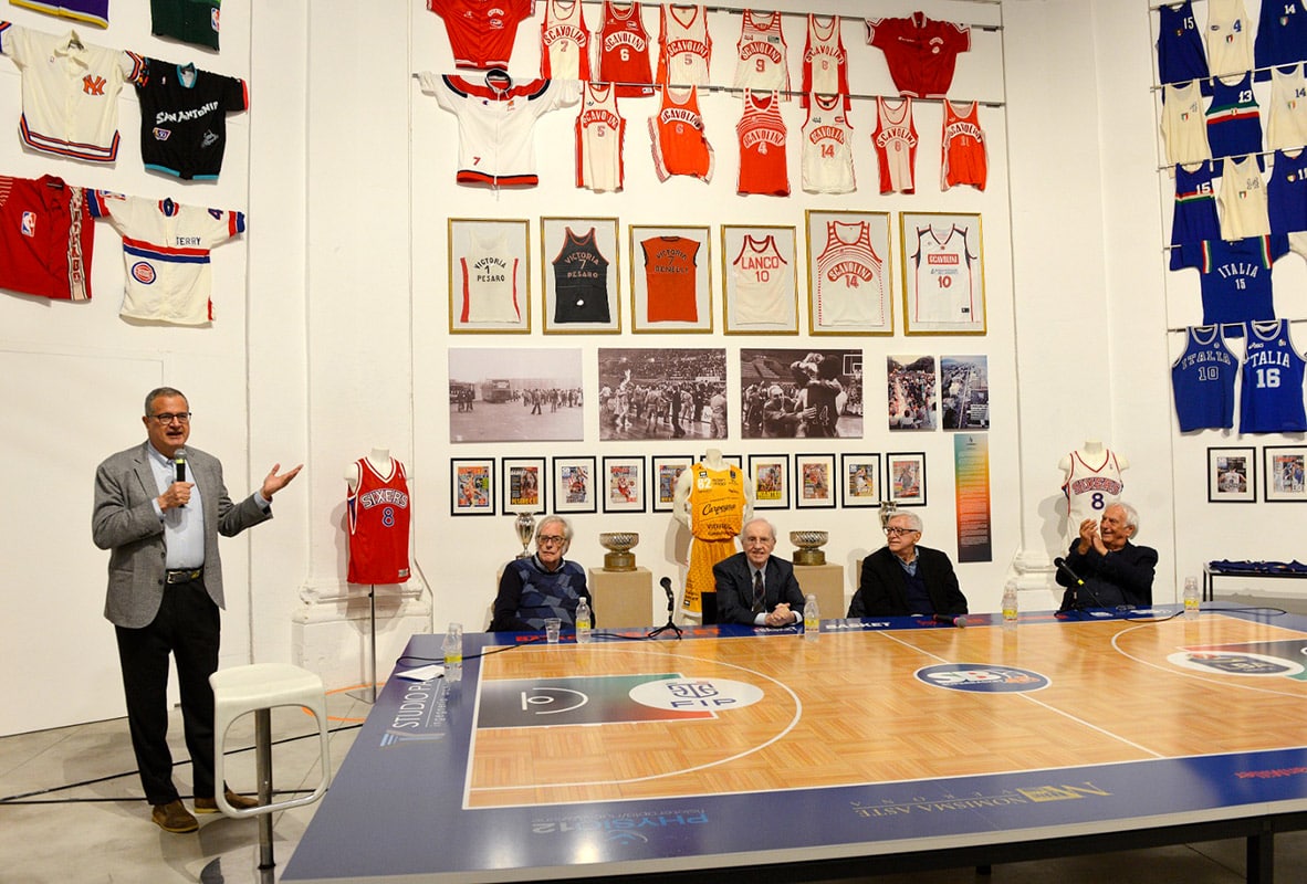 La conferenza stampa della mostra è stata animata dalla presenza di due nomi storici del basket italiano e internazionale, gli ex-rivali Dan Peterson e Valerio Bianchini, allenatori di Olimpia Milano, Virtus Roma e Victoria Libertas Pesaro negli anni Ottanta, periodo in cui le tre squadre si contendevano spesso il primato.
