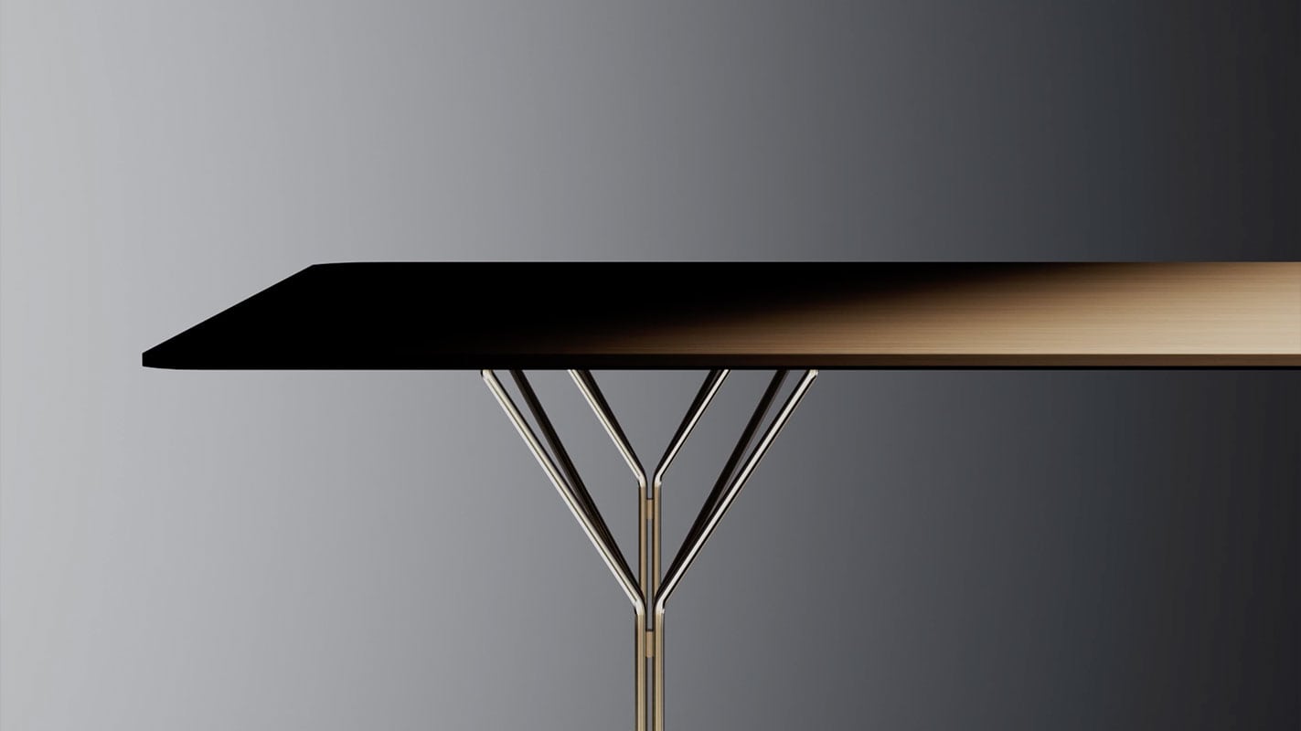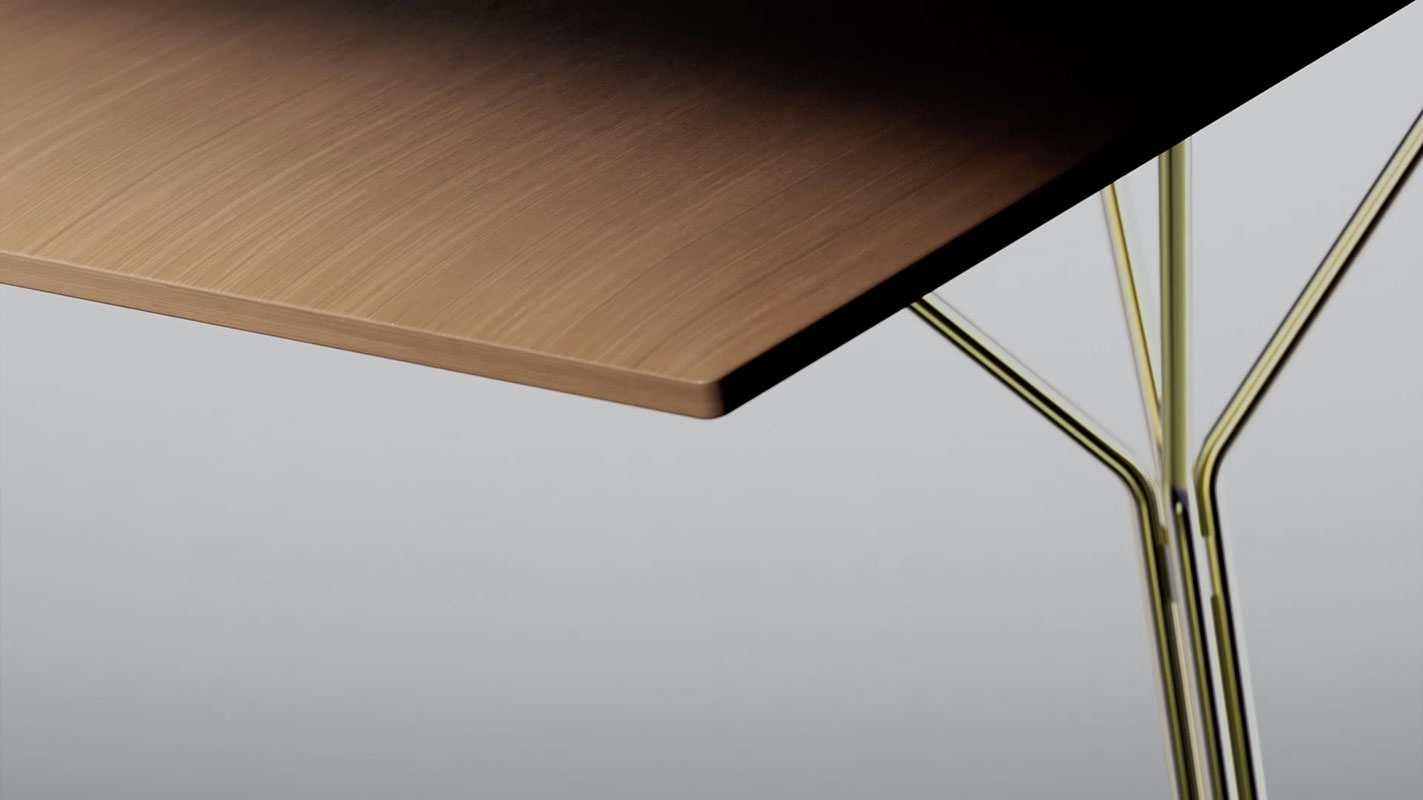 Il sistema di tavoli Y si distingue per le sue forme leggere e l’essenzialità dei materiali utilizzati.