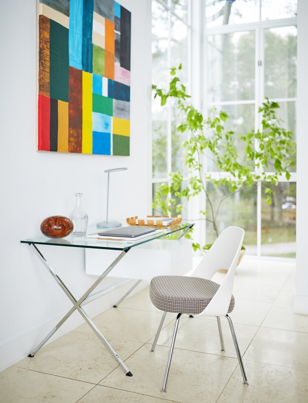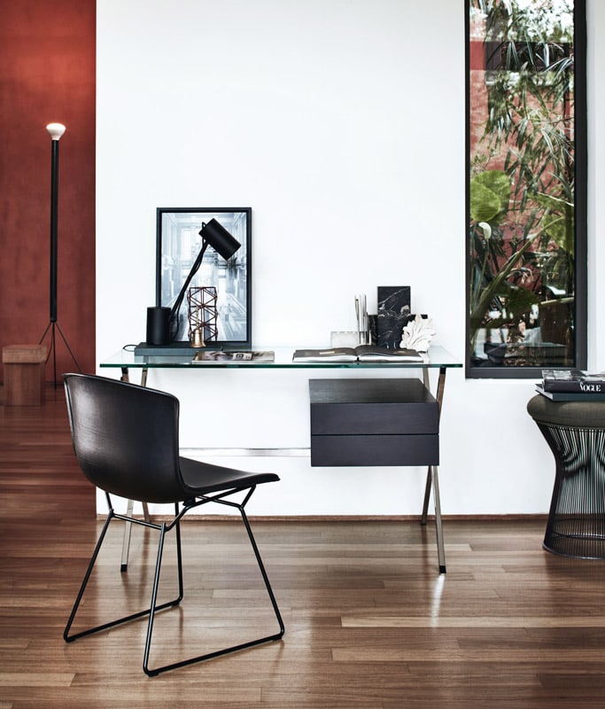 La scrivania in vetro Albini Desk di Knoll, arreda con gusto semplice ed impeccabile sia ambienti professionali che residenziali: uffici direzionali, uffici operativi, home office, welcome lounge, soggiorni, ingressi e camere da letto.