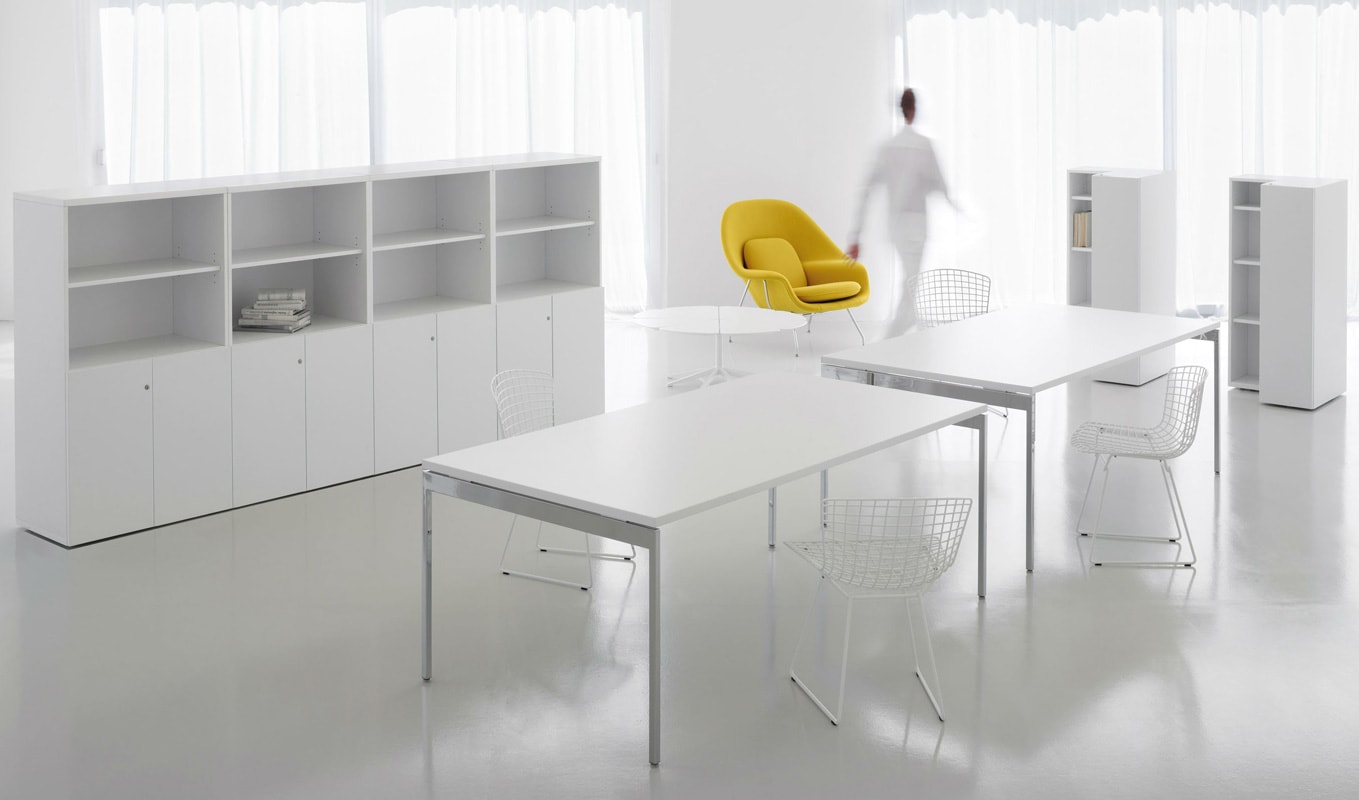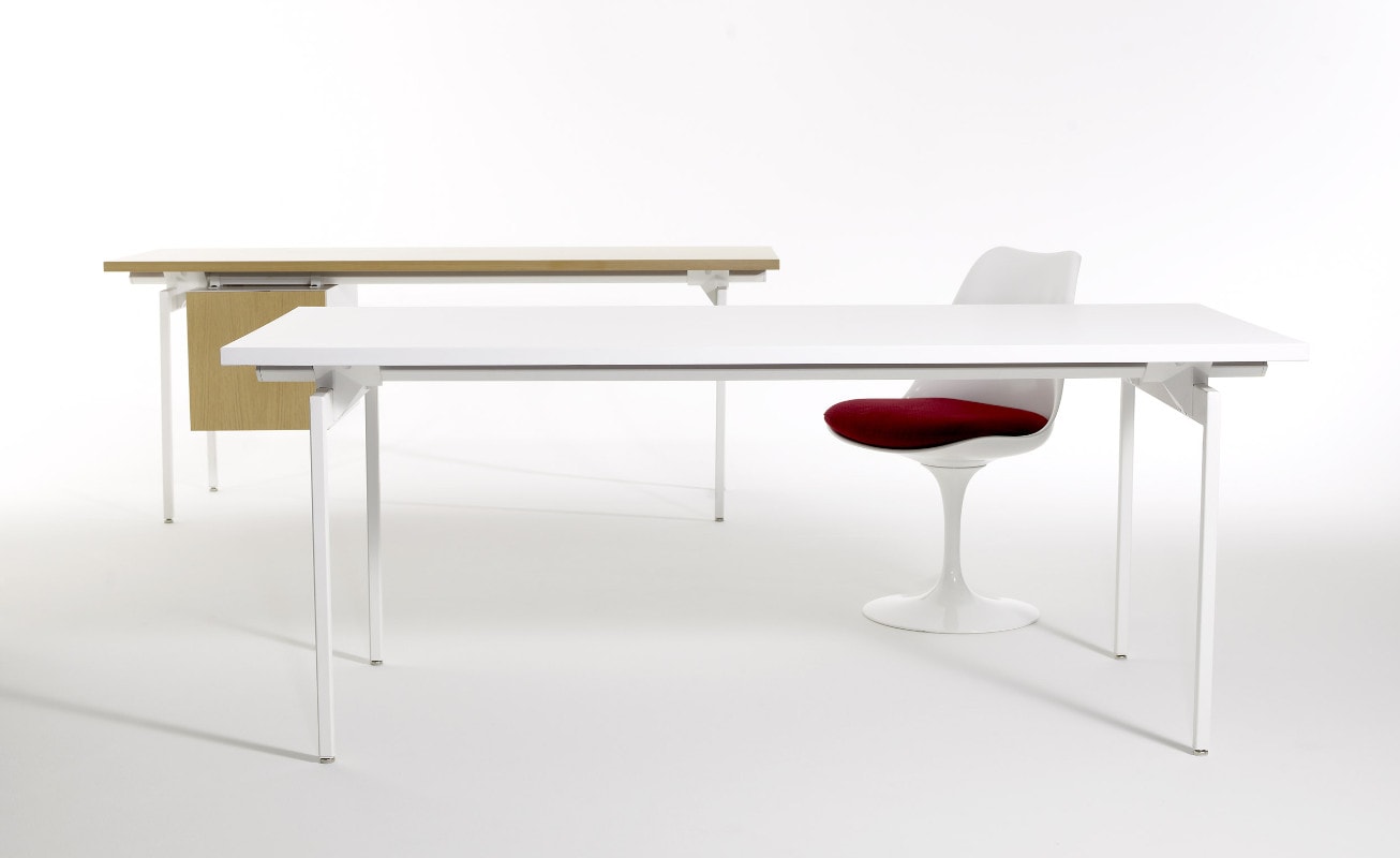 Antenna Desk di Knoll fa parte dell’omonima serie Antenna Workspaces, un sistema di tavoli riunione, tavoli bench, cassettiere, contenitori e schermi divisori incredibilmente semplice e versatile, in grado di adattarsi a diverse tipologie di ambienti di lavoro.