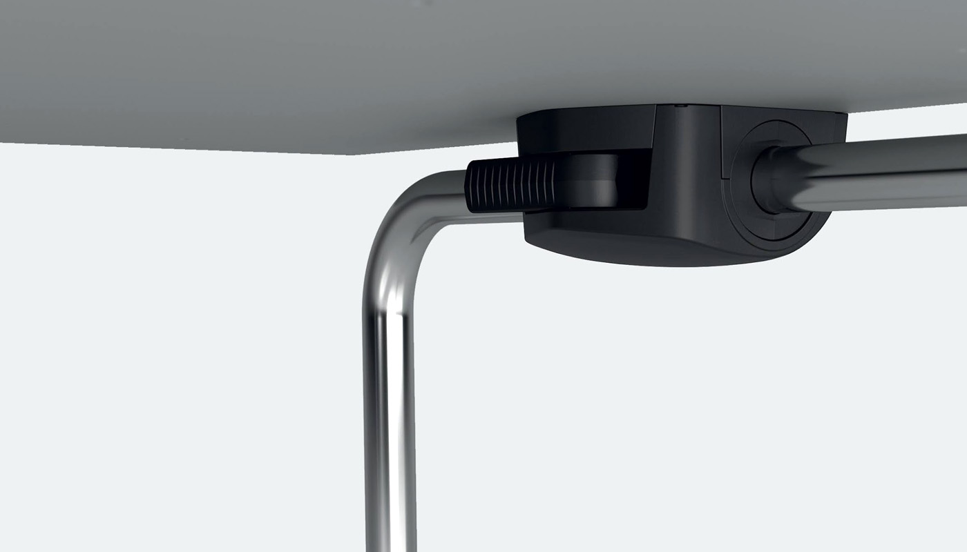 Le gambe in tubo ø 35 mm sono disponibili in tre varianti per adattarsi a profondità del piano da 46 a 90 cm, con lunghezze consigliate da 85 a 180 cm.