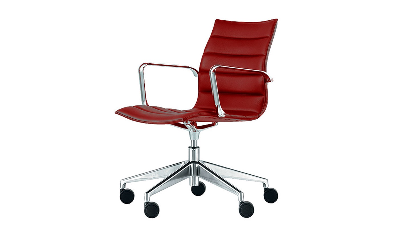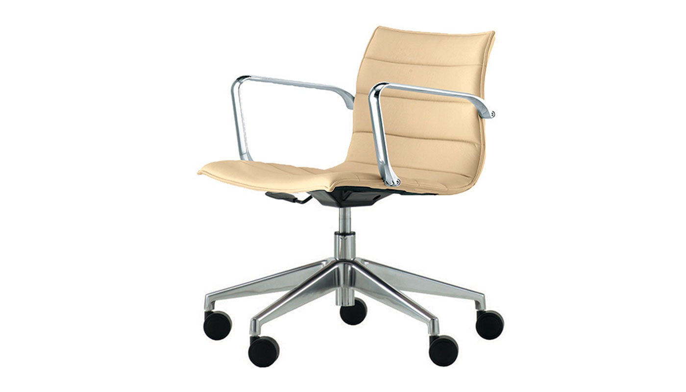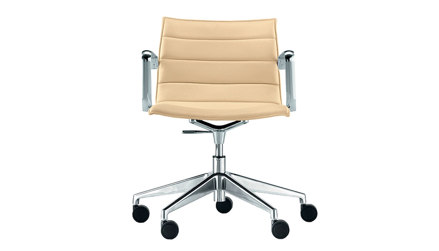 Dafne è una sedia da ufficio con base girevole, pensata per arredare gli ambienti di lavoro e gli uffici dallo stile contemporaneo. È realizzata con struttura in pressofusione d’alluminio lucidato, con o senza braccioli, ha imbottitura in poliuretano espanso per un maggiore comfort e il rivestimento è caratterizzato da una trapuntatura orizzontale, che ne determina l’estetica di sobria eleganza.