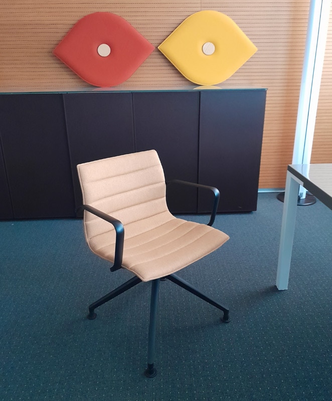 Dafne è una seduta ospiti elegante, sobria e duratura ideale sia per un tavolo riunioni sia per il fronte scrivania di un ufficio aziendale.