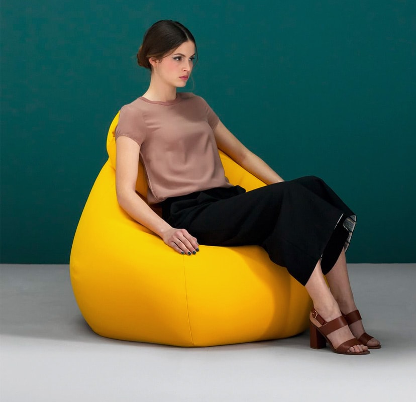 Sacco è un involucro riempito di palline di polistirolo espanso ad alta resistenza, è leggero e assume i contorni del corpo di chi si siede, assecondandone qualsiasi movimento e postura.