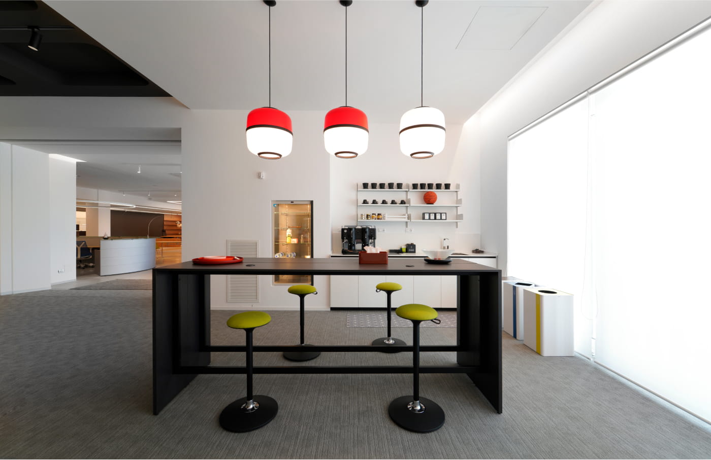 La zona dedicata al coffee break o alla pausa pranzo permette di rilassarsi lontano dalle postazioni, per dare il giusto valore a un momento prezioso della giornata lavorativa.