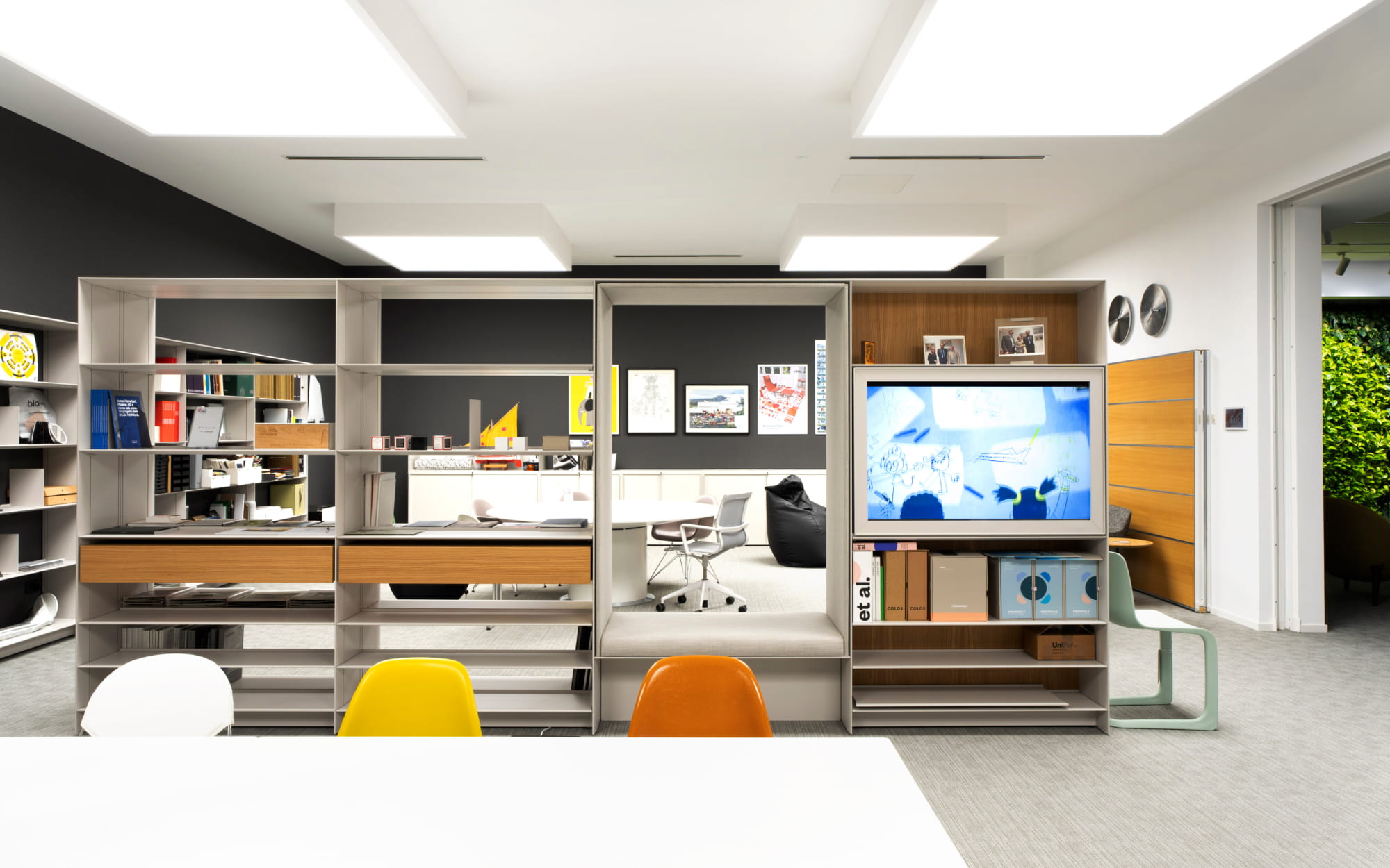 L’esperienza Herman Miller comincia nel lounge, con sedute informali e confortevoli per accogliere e dare spazio alla circolazione delle idee.