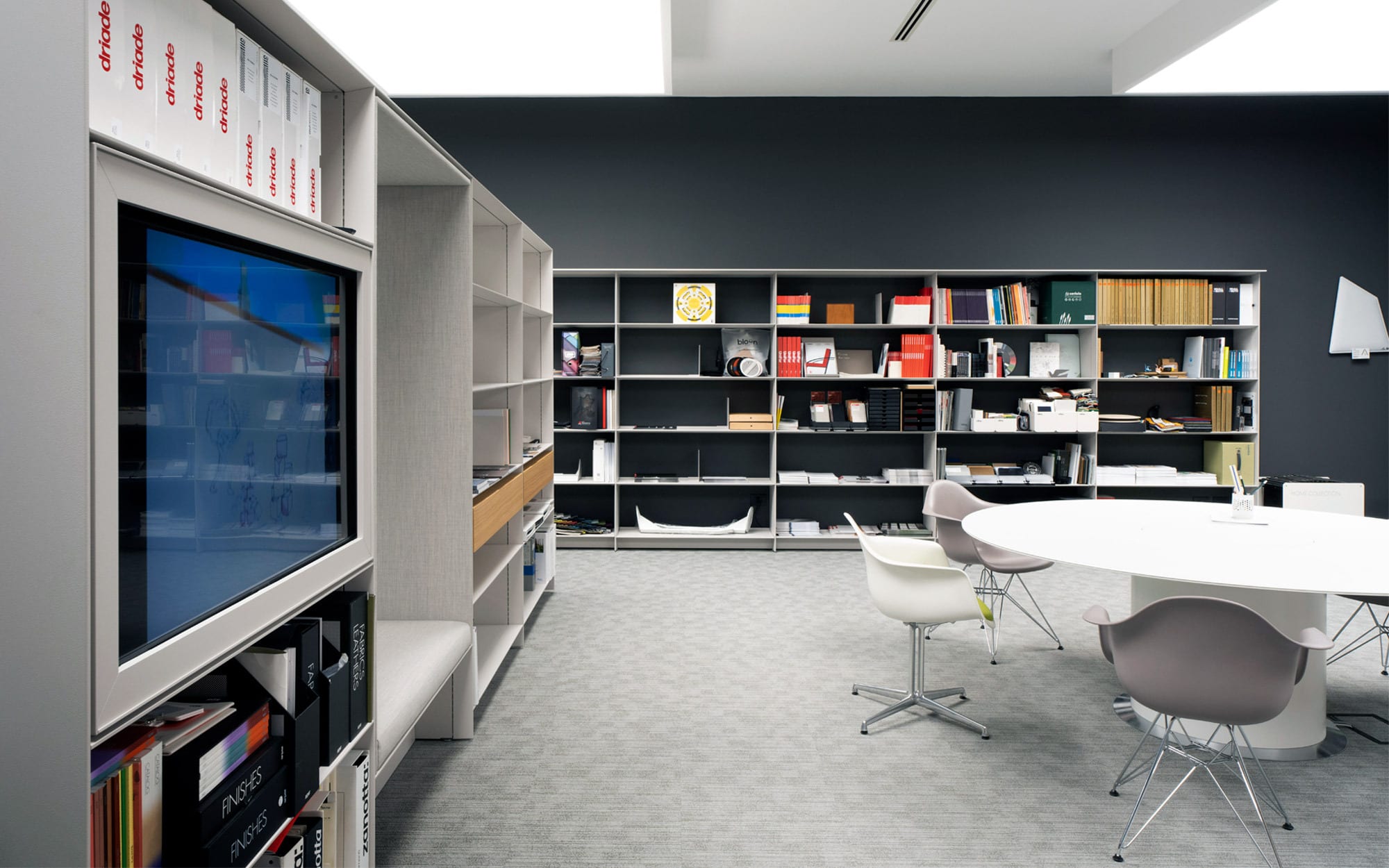 La materioteca è uno spazio di confronto per professionisti. Qui è possibile consultare libri, audiovisivi e campionari, analizzare i progetti, incontrare i fornitori e dare forma alle idee.